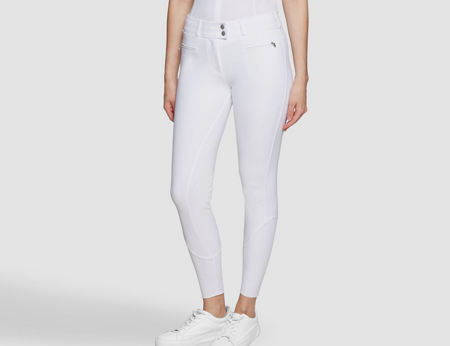 Design elegante com o logotipo da Samshield na coxa, perfurações na panturrilha e costura contrastante no cós.