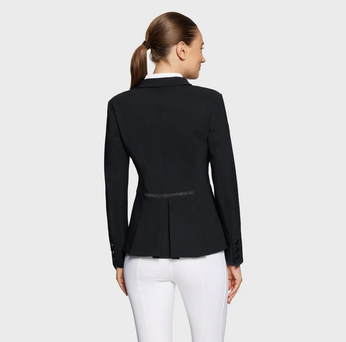 O casaco Victorine foi concebido para proporcionar conforto e desempenho técnico em cavaliers. O seu corte fino e assimétrico (mais curto à frente do que atrás) garante um ajuste perfeito, elegância e conforto na condução. O Victorine é fabricado com um tecido técnico altamente respirável, flexível, leve e resistente para um conforto ótimo. Com tratamento anti-UV, o Victorine protege a pele dos raios ultravioleta. O interior do casaco é feito de tecido elástico e malha para uma excelente respirabilidade e liberdade de movimentos. Os pormenores em cristais Swarovski®, como o brasão Samshield na manga e os cristais nos punhos, juntamente com os elementos Alcantara® genuínos, fazem do Victorine um casaco elegante e feminino. O bolso no peito confere-lhe originalidade e distinção. O Victorine também está disponível na versão Victorine Crystal Fabric.