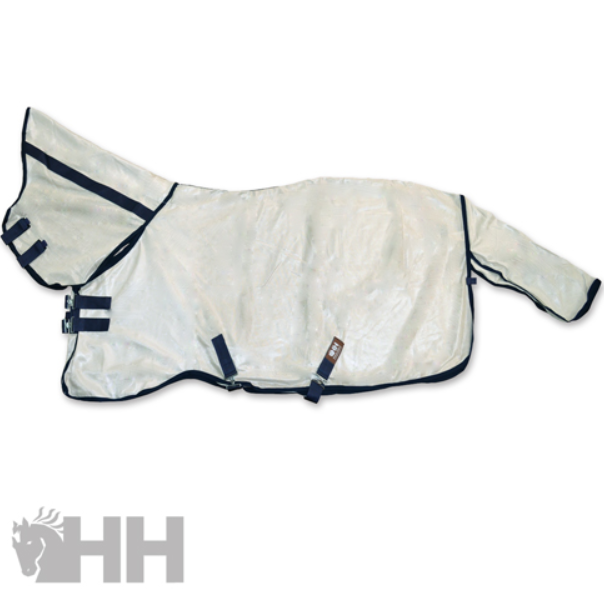 Coberjão feito de poliéster ultrarrespirável para proteger o cavalo de todos os tipos de insetos durante as épocas mais quentes do ano. Inclui cobre pescoço fixo e cintas cruzadas para suporte completo e liberdade de movimento.