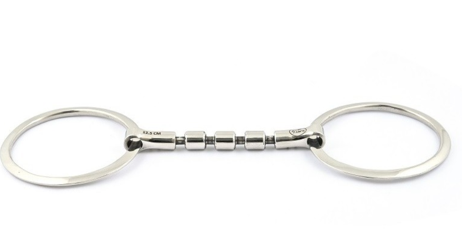 Os anéis grandes e planos oferecem melhor suporte para o cavalo e proporcionam um leve efeito de alavanca. Os roletes permitem um pouco mais de relaxamento.