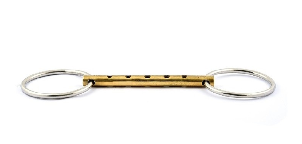 O bridão de dois anéis é o mais simples em sua ação, mas este bocal em particular, com sua finura e orifícios, torna sua ação muito mais forte. Portanto, este freio é relativamente potente.