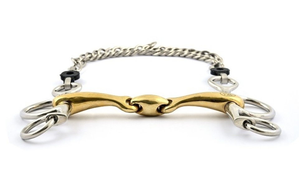 Ela oferece diferentes graus de alavancagem, dependendo do comprimento das hastes, do ajuste da corrente de alavanca e de sua construção geral. Induz uma flexão do pescoço e pressão na mandíbula.
