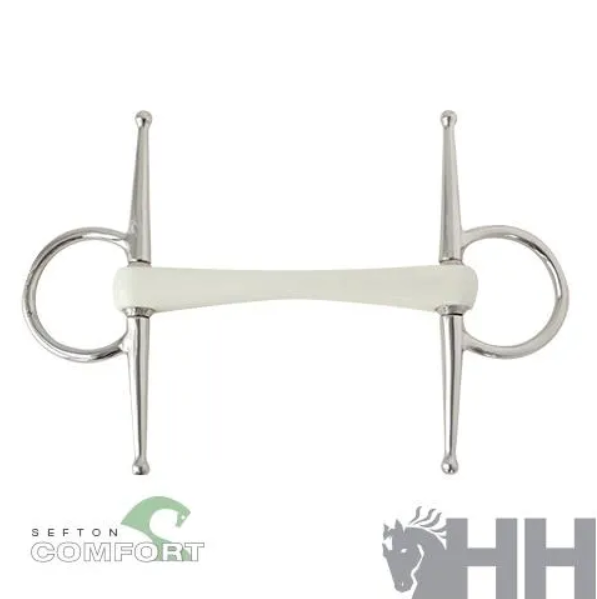 Nova coleção SEFTON COMFORT. A boca é feita com um material termoplástico de alta qualidade que estimula a mastigação enquanto suaviza o contato com o cavalo. Tal contato com a boca é muito estreito e refinado e, portanto, produz um conforto muito alto e ajuda a fazer o arranjo do cavalo para agir muito alto. Os núcleos internos da boca são de aço inoxidável