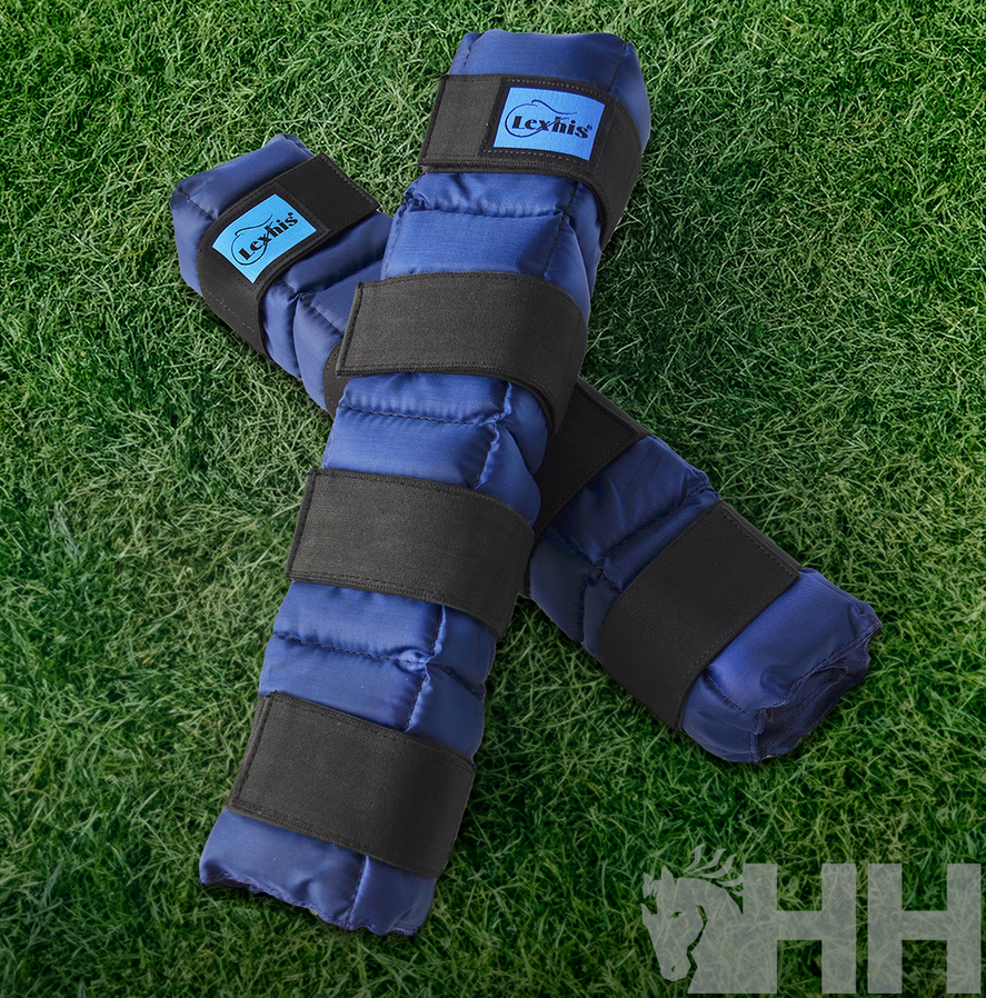 Protetor com interior em gel para congelar e manter os protetores frios por mais tempo, refrescando os membros do cavalo.