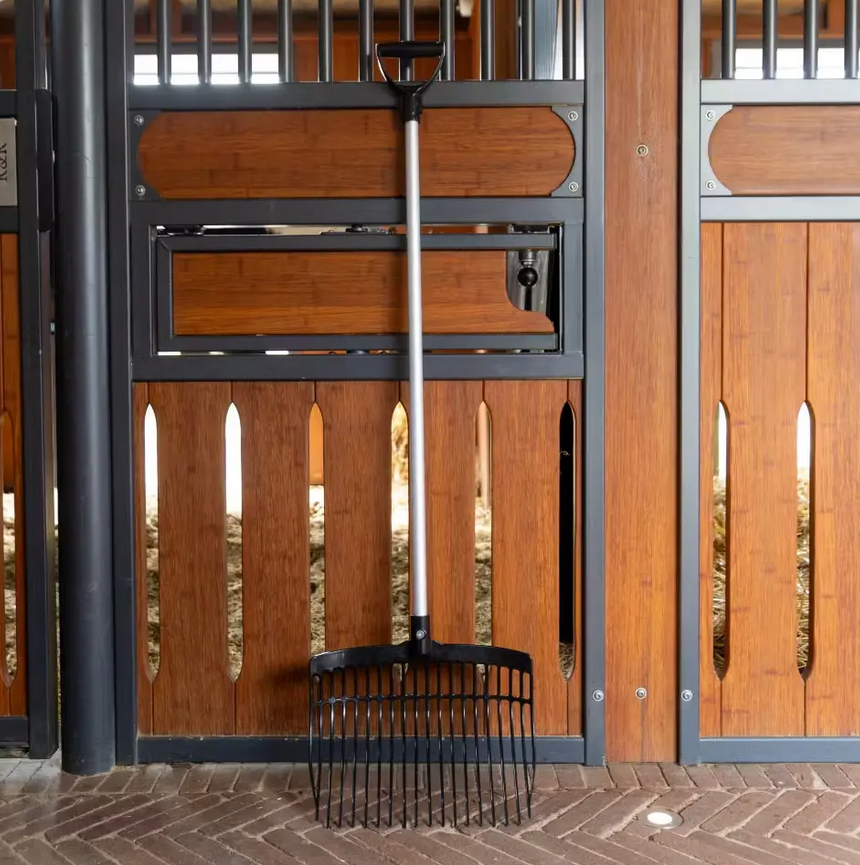 É uma ferramenta prática e durável, projetada para facilitar a limpeza e as tarefas do dia a dia no estábulo.