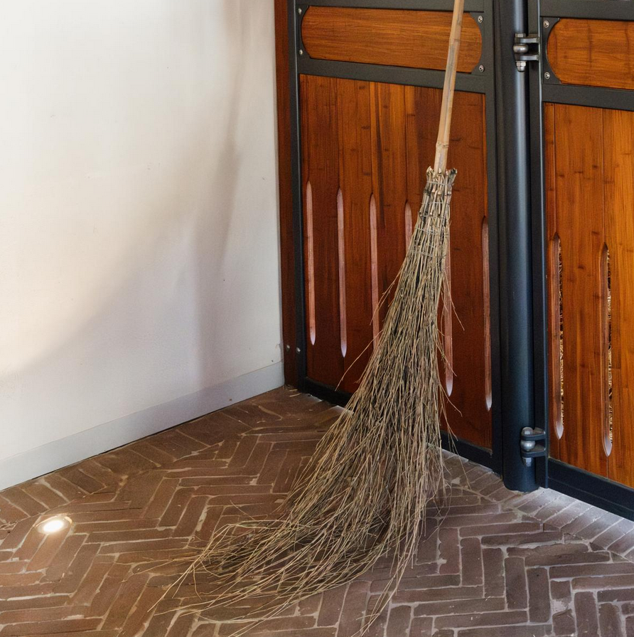A vassoura de bambu é uma ferramenta de limpeza ecológica, durável e elegante, perfeita para manter seu estábulo e sala de arreios impecáveis.