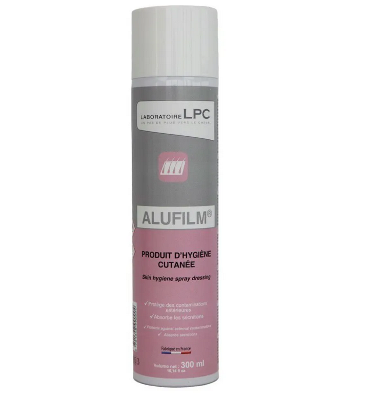O Spray de Bandagem ´´Alufilm´´ é um spray para a pele que oferece uma barreira física contra a contaminação externa. O pó de alumínio micronizado forma um escudo protetor à medida que seca.