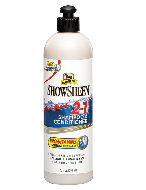 Transforme o cuidado do seu cavalo com Showsheen, o shampoo dá brilho e garante brilho e facilidade na escovagem.