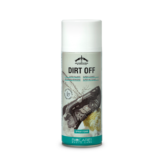 Dirt Off é a espuma ideal para limpar as proteções e acessórios do seu cavalo, removendo suor, areia e sujeira. Prática e eficaz, elimina todos os vestígios de sujeira das botas.